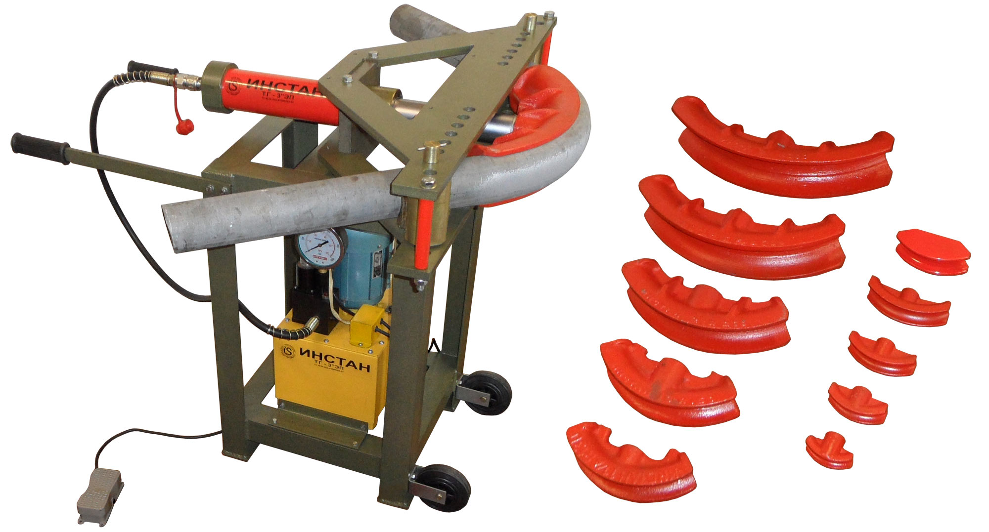 Трубогиб гидравлический с электроприводом является профессиональным оборудованием и предназначен для гибки газо-водопроводных труб по ГОСТ 3262-75, а также проката круглого сечения, прочностные характеристики которого не превышают характеристик трубы 3" (условный проход 80 мм).