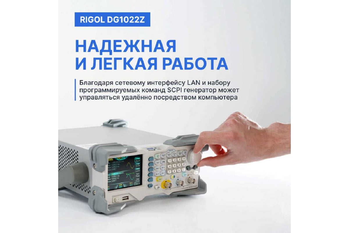 Генератор Rigol DG1022Z — это передовое устройство, оснащенное революционной технологией DDS, что обеспечивает точность, характерную для цифровых генераторов. Благодаря сетевому интерфейсу LAN и набору программируемых команд SCPI, вы можете легко управлять генератором удаленно с помощью компьютера.