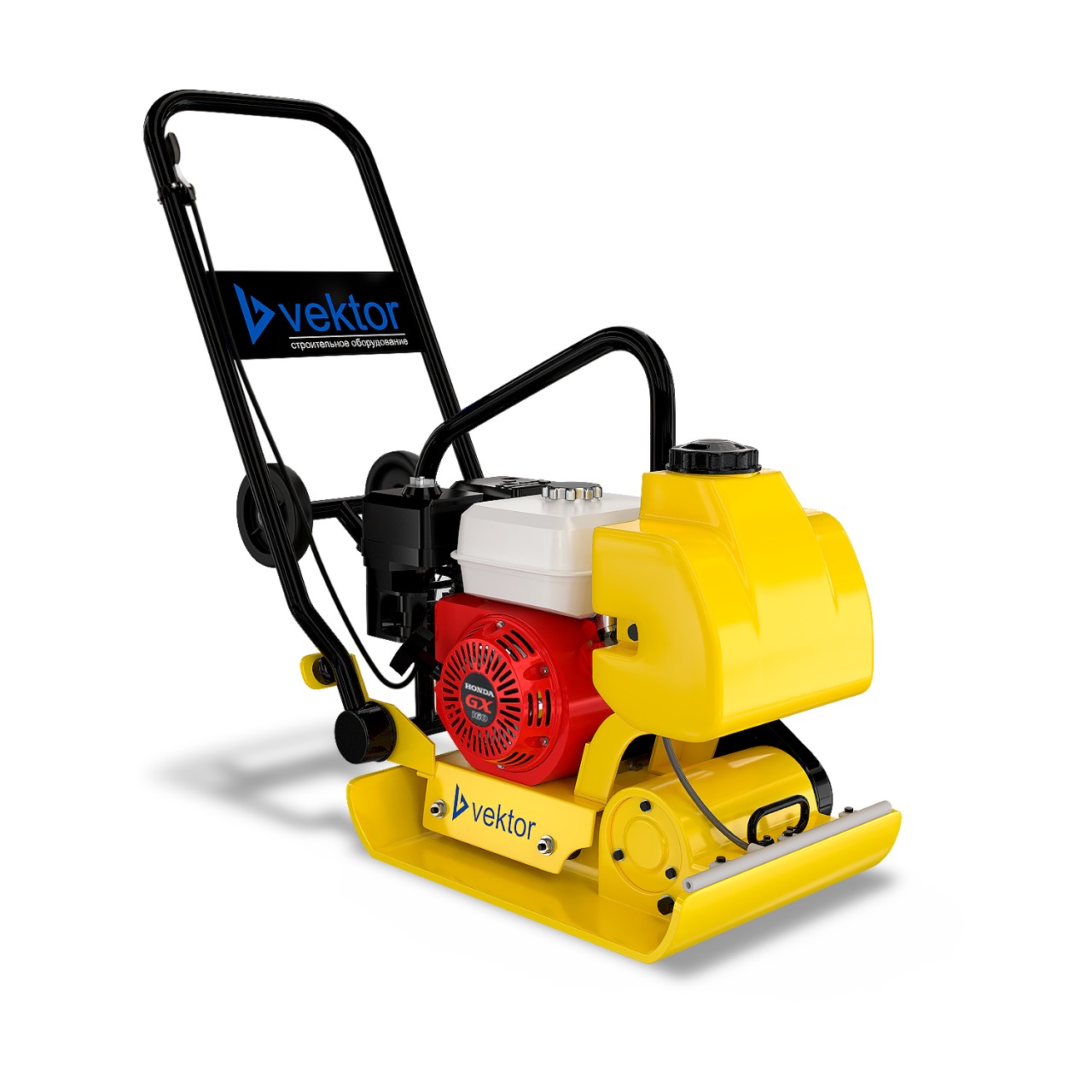 Виброплита работает на бензиновом двигателе Honda, что делает её автономной. Мощность двигателя 4 кВт/5.5 л.с.