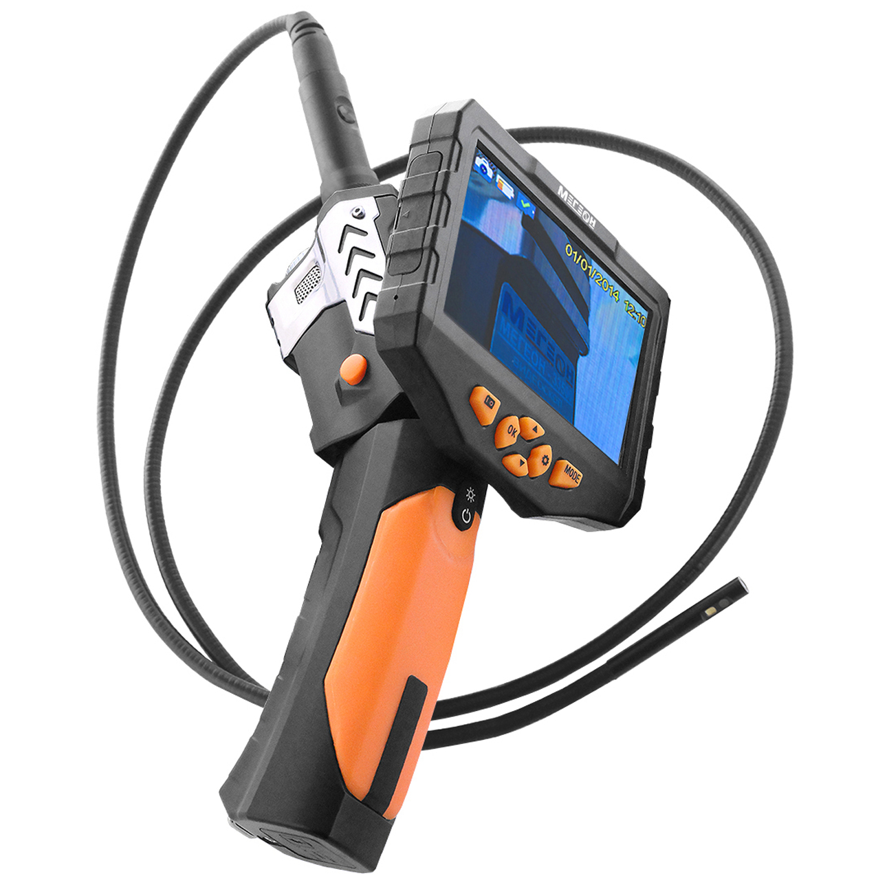 МЕГЕОН 33500- 155D - новинка в модельном ряду цифровых видеоскопов, предназначенный для решения задач в быту и промышленности. Эндоскоп представляет собой устройство для исследования и осмотра скрытых от глаза полостей с возможностью сохранения видеоизображения со звуком на встроенный носитель MicroSDHC 32Гб. Помимо этого предусмотрено получение цветных изображений с помощью фотографий. Зонд диаметром 5 мм и длиной 1 метров имеет полужёсткую конструкцию на конце которого поместились две перпендикулярно направленные камеры. Подсветки оснащены яркими светодиодами со ступенчатой регулировкой яркости, которые обеспечивают работу в условиях полного отсутствия освещения. Большой ЖК-дисплей с разрешением 1280х720 точек и диагональю 5' отчётливо отобразит всё происходящее перед объективом. Дополнительно в корпусе предусмотрена подсветка с высокой интенсивности свечения, которая с лёгкостью заменит фонарик. Преимущества изделия по достоинству смогут оценить профессионалы и любители.