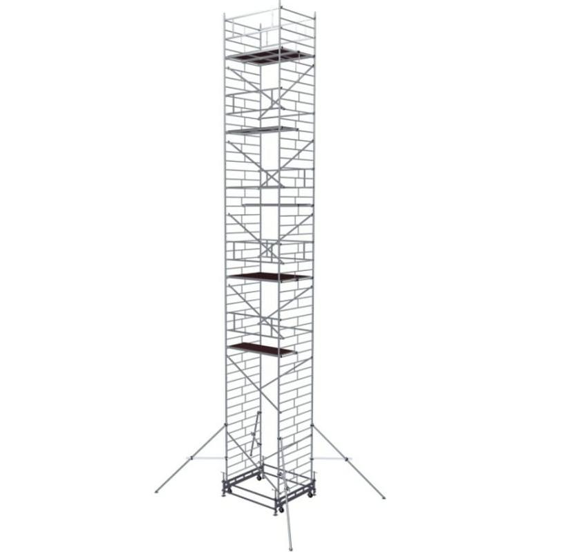 Вышка модульная алюминиевая MEGAL ВМА 1400/14 предназначена для организации рабочего места на высоте с использованием лестничных маршей в строительно-монтажных, ремонтных и прочих работах. Вышка собирается из двухметровых и метровых вертикальных рам. Рамы стыкуются между собой и фиксируются крепежными скобами. Все ступени рам выполнены из рифленого профиля, что обеспечивает безопасный подъем. Используются диагональные и горизонтальные связи (стяжки). Рабочий настил размером 2,0 х 1,4 м с люком. Вышка монтируется на усиленном широком основании. Мобильность вышки достигается за счет поворотных колес со стопорами. Опорная поверхность на домкратах, исключая колеса.