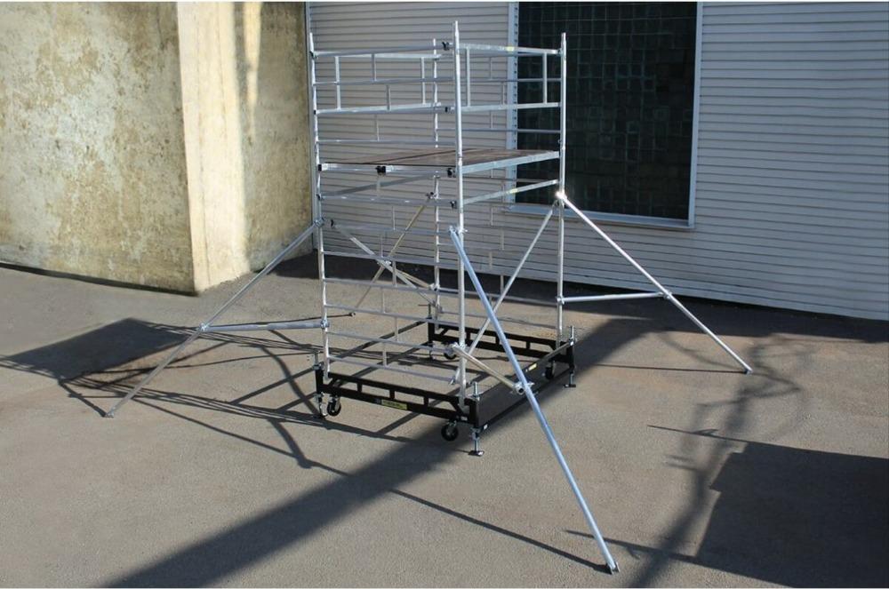 Вышка модульная алюминиевая MEGAL ВМА 1400/20 предназначена для организации рабочего места на высоте с использованием лестничных маршей в строительно-монтажных, ремонтных и прочих работах. Вышка собирается из двухметровых и метровых вертикальных рам. Рамы стыкуются между собой и фиксируются крепежными скобами. Все ступени рам выполнены из рифленого профиля, что обеспечивает безопасный подъем. Используются диагональные и горизонтальные связи (стяжки). Рабочий настил размером 2,0 х 1,4 м с люком. Вышка монтируется на усиленном широком основании. Мобильность вышки достигается за счет поворотных колес со стопорами. Опорная поверхность на домкратах, исключая колеса.