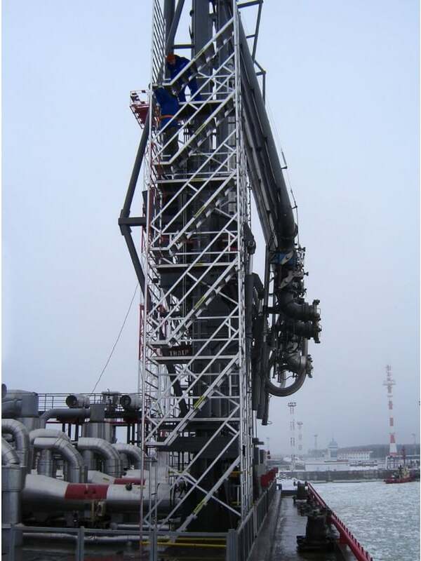 Вышка модульная алюминиевая MEGAL ВМА 1400Л/8 предназначена для организации рабочего места на высоте в строительно-монтажных, ремонтных и прочих работах. Сборка вышки производится без использования инструментов за счет наличия замкового крепления элементов. Вышка собирается из двухметровых и метровых вертикальных рам. Рамы стыкуются между собой и фиксируются крепежными скобами. Площадки соединяются наклонными лестничными маршами с рифлеными широкими ступенями, что обеспечивает комфортный подъем. Каждый марш оснащен перилами-ограждениями для безопасности. Монтируется на компактном основании из стальных стяжек. Рабочая площадка размером 2,0 х 1,4 м позволяет с удобством расположиться четырем рабочим с инструментом. Высокая грузоподъемность обеспечивается за счет использования труб и профилей со стенкой не менее 2,5мм. Вышка имеет легкий вес за счет использования алюминиевых сплавов. Компенсация неровной поверхности возможна за счет регулирования вышки по высоте с помощью винтовых опор. Наличие поворотных колес со стопорами обеспечивает мобильность вышки.