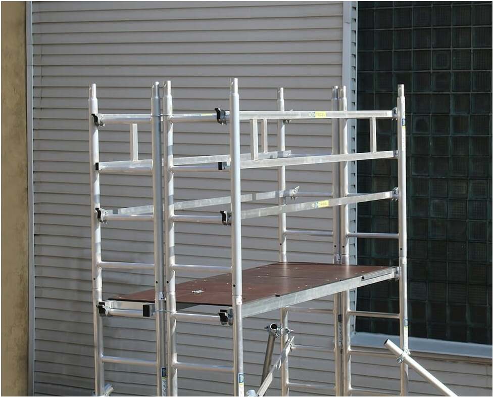 Вышка собирается из узких двухметровых и метровых вертикальных рам. Рамы фиксируются крепежными скобами и крепежом для стыкования рам. Все ступени рам выполнены из рифленого профиля. Используются диагональные и горизонтальные связи (стяжки).