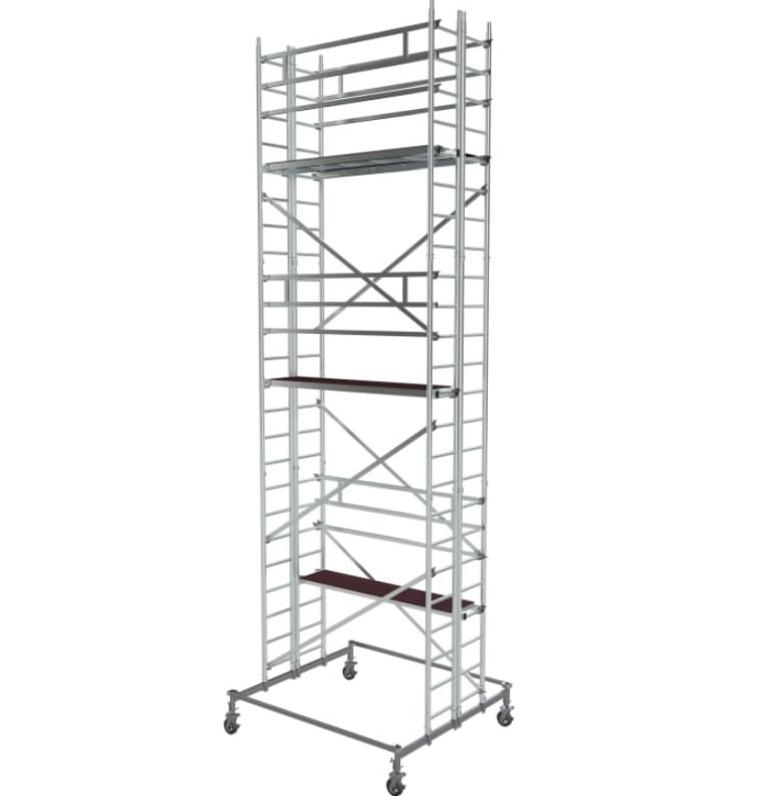 Вышка собирается из узких двухметровых и метровых вертикальных рам. Рамы фиксируются крепежными скобами и крепежом для стыкования рам. Все ступени рам выполнены из рифленого профиля. Используются диагональные и горизонтальные связи (стяжки).
