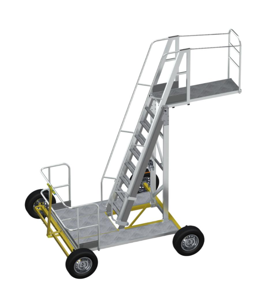 Вышка-стремянка алюминиевая для нефтяной промышленности MEGAL ВСА-4.2Н2 (2,8-4,2) -2 предназначена для обслуживания автомобильных или железнодорожных цистерн на разных высотах. Лестничный марш вышки разбит на две секции, которые могут перемещаться относительно друг друга посредством роликового узла и ручной лебедки. Высота рабочей площадки регулируется в диапазоне от 2.8 до 4.2 метров с шагом 280мм. Перила установлены по все длине лестничного марша. Верхняя рабочая площадка прямоугольной формы, размер 1500х500 мм. Торцевая сторона площадки закрыта алюминиевым ограждением. Боковые стороны площадки закрыты цепочками. Широкое основание позволяет размещаться на нижней площадке рабочим с инструментом. Траверсы оборудованы винтовыми опорами и автомобильными колёсами R13. Допустимая скорость перемещения 5 км/час при буксировке автомобильным транспортом.