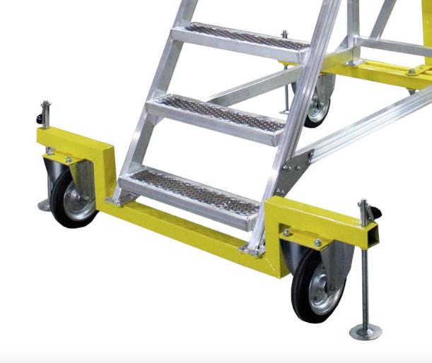 Вышка-стремянка алюминиевая MEGAL ВСА-1,5А предназначена для безопасной и удобной работы на складах, стройплощадках, в производственных цехах. За счет использования труб и профилей со стенкой не менее 2,5мм обеспечивается высокая грузоподъемность. Подъем осуществляется по широким ступеням из просечно-вытяжного листа, обеспечивающим надежное сцепление в холодное время года. Глубина ступеней 135 мм. Для безопасного подъема и спуска в конструкции предусмотрены перила по всей длине лестничного марша. Поворотные колеса обеспечивают высокую маневренность. Колесная база оснащена винтовыми опорами, обеспечивающими устойчивость изделия при работе на высоте.