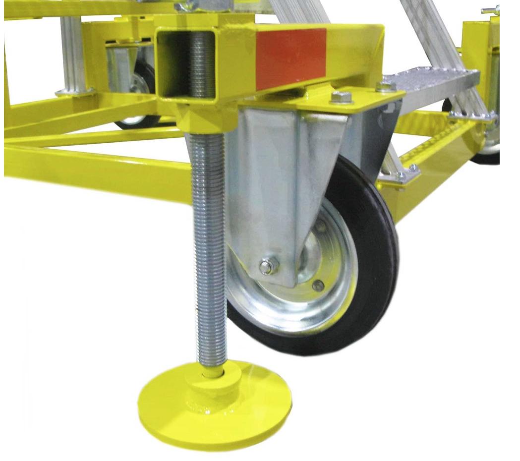 Вышка-стремянка алюминиевая MEGAL ВСА-4,0А предназначена для безопасной и удобной работы на складах, стройплощадках, в производственных цехах. За счет использования труб и профилей со стенкой не менее 2,5мм обеспечивается высокая грузоподъемность. Подъем осуществляется по широким ступеням из просечно-вытяжного листа, обеспечивающим надежное сцепление в холодное время года. Глубина ступеней 135 мм. Для безопасного подъема и спуска в конструкции предусмотрены перила по всей длине лестничного марша. Поворотные колеса обеспечивают высокую маневренность. Колесная база оснащена винтовыми опорами, обеспечивающими устойчивость изделия при работе на высоте.