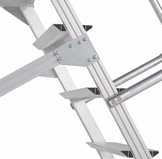 Вышка - стремянка разборная на колесах (300кг+150кг) MEGAL ВС3-3.0 предназначена для работ в торговых залах, на складах, вдоль стеллажей и других объектов, при проведении ремонтных, монтажных и иных работ на высоте. Представляет собой безопасную и легкую конструкцию из алюминиевых профилей высокой прочности. Имеет безопасные противоскользящие ступени из специального рифленого профиля. Площадка размером 800х680мм позволяет удобно расположиться рабочему с необходимым инструментом. Трехстороннее ограждение площадки со встроенной защитной планкой в районе колен, бортовое ограждение, перила по всей длине лестничного марша, ступени глубиной 160мм обеспечивают безопасный подъем, спуск и проведение работ, что подтверждает полное соответствие требованиям по ГОСТ. Все соединительные узлы и элементы полностью безопасны, обработаны и одобрены службой контроля качества. Простая и быстрая сборка лестницы без специального инструмента и поставка в виде предварительно собранных узлов сокращают время подготовки оборудования MEGAL к работе. Максимальный срок службы достигнут благодаря коррозионностойким свойствам алюминиевых сплавов. Небольшая занимаемая площадь и прочные поворотные колеса со стопорами позволяют легко маневрировать в ограниченном пространстве.