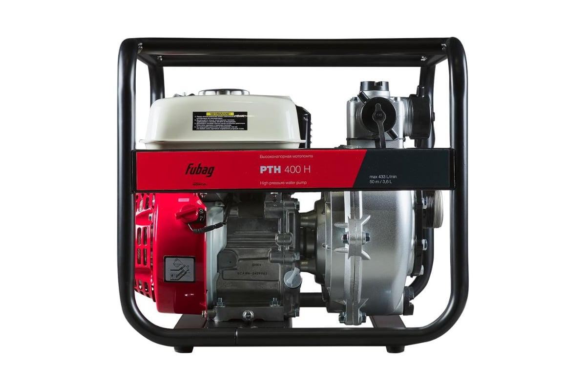 Высоконапорная мотопомпа FUBAG PTH 400 H оснащена профессиональным 4-тактным бензиновым двигателем Honda GX 160 с воздушным охлаждением. Модель предназначена для перекачивания чистой воды без абразивных частиц. Максимальная производительность составляет 433 л/мин (25,98 м3/ч).